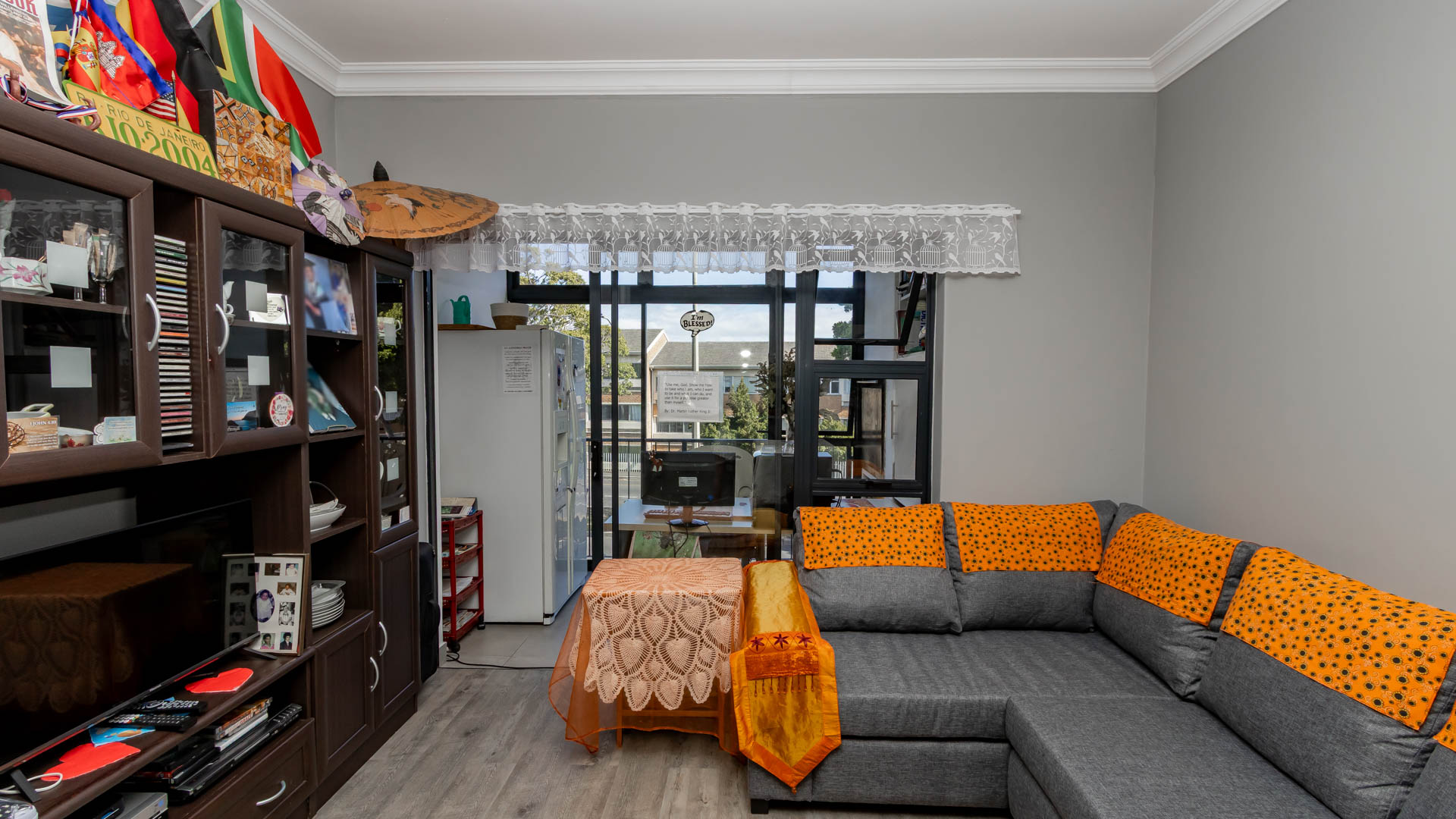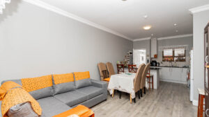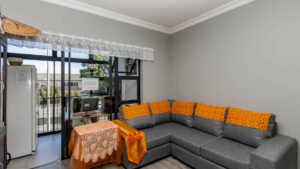 Open plan lounge / living area leading out onto an enclosed braai patio.