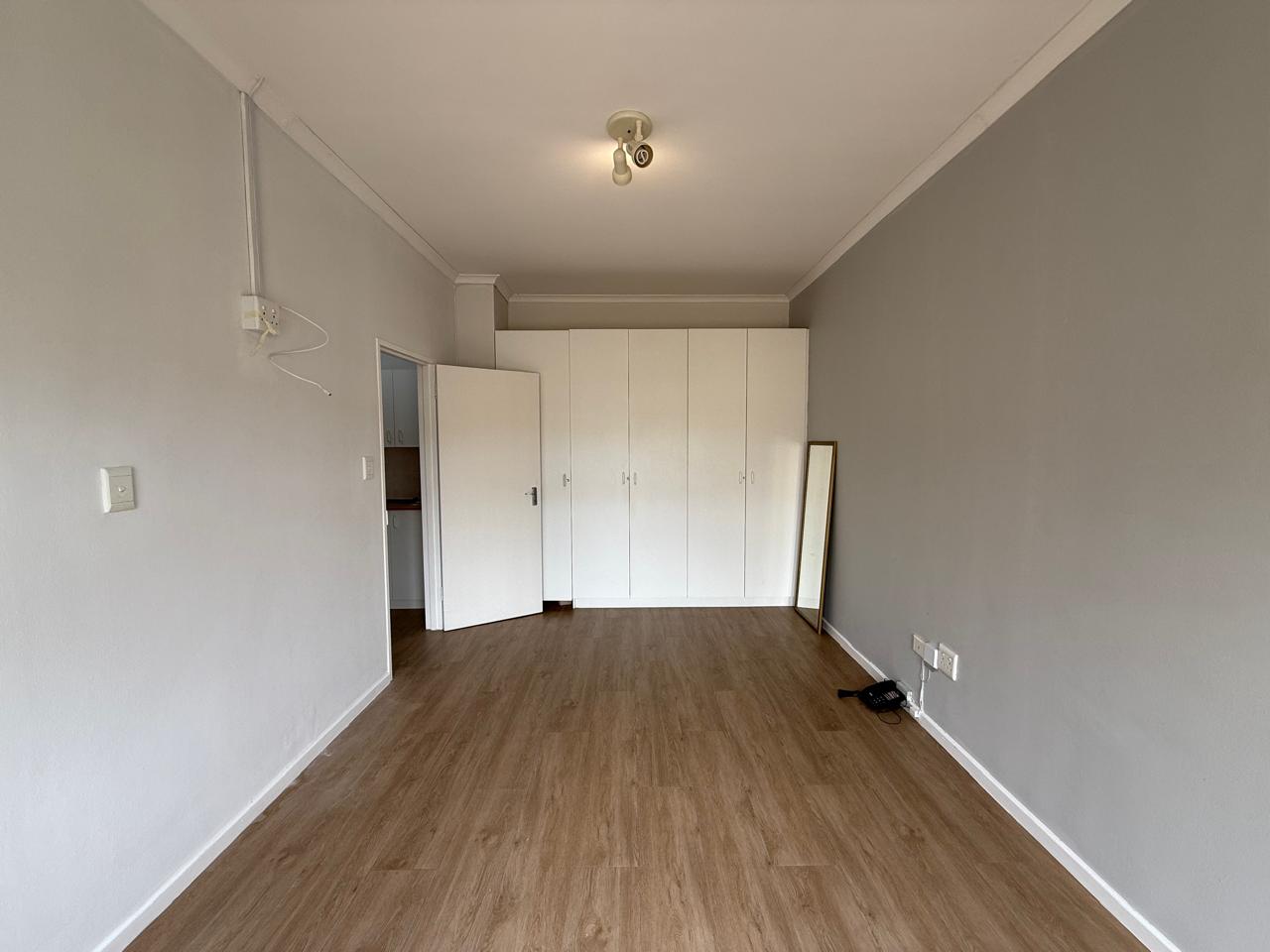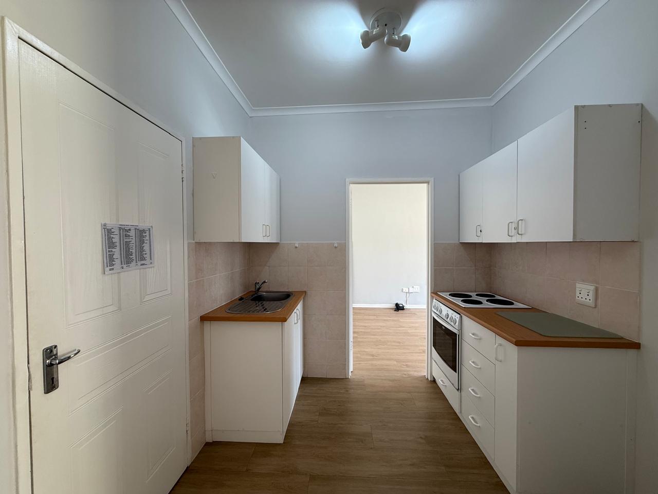 The bedroom is fitted with ampule built-in cupboards and has a en-suite offering a walk in shower, toilet and washbasin. The living area has space for a dining room table and lounge set. Open plan kitchen with build in cupboards, stove and oven.